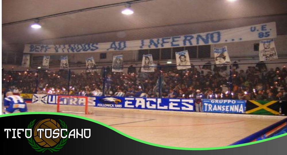 L'hockey, come qualsiasi altro sport collettivo che si giochi a squadre contrapposte, ha il suo pubblico, e il suo tifo. A Follonica, dai “quattro gatti” che si davano convegno intorno alle tavole del Florida (noto luogo di aggregazione follonichese degli anni 70-80), si è giunti alle tribune stracolme della “Pista dei Pini”, allora primo campo di gioco, mano a mano che la squadra, dalla Promozione, sale ai fastigi della serie A. Negli anni 70, chi assiste agli allenamenti alla “Pista” sono appassionati ragazzini, molti dei quali affrontano i pattini per la prima volta, e durante le partite di campionato, sulle tribune si ritrovano anche villeggianti ed indigeni. Ma il settore più “turbolento” e folkloristico è senz'altro quello della tribuna lato mare, che durante il primo campionato di serie A, viene denominata Tribuna Sud o Tribuna del Popolo. È da qui che il tifo parte e contagia gli altri settori, sale alle stelle, incita, impreca, sostiene, talvolta beffeggia, diventa ossessivo, turbinoso, sonante. I vertici, ovviamente, si toccano quando gli avversari del Follonica sono i vari Novara, Monza, Trieste, una volta visti come giganti in lotta contro il topolino maremmano. Per il suo tifo particolare, la “Pista dei Pini” ha acquistato una certa notorietà fra avversari, arbitri e giornalisti sportivi. Tutti i cori sono accompagnati da tamburi, nacchere, raganelle anche di dimensioni inusuali, trombe, campanacci maremmani (che hanno un suono proprio, inconfondibile, maremmano appunto…), rendono la zona limitrofa piuttosto rumorosa per un raggio di circa 500 metri, tanto è che qualcuno cui era proibito dormire, cancellò la targa indicante la vicina Via Merloni con “Via dei Fracassoni”. In pista, i giocatori sentono l'incitamento al pari degli avversari che lo subiscono. È un tifo che neppure le batoste hanno mai tacitato, figuriamoci le vittorie; si ricorda un Follonica – Monza, con gli ospiti in netto vantaggio (0-10): il gol della bandiera dei locali, scatenò un entusiasmo come se quella avesse voluto dire la vittoria. Dalla spontaneità “becera” della Tribuna del Popolo, a Follonica quindi si è passati al tifo organizzato del Club Forza Azzurri Aldo Nicoletti. Bandieroni e striscioni bianco-azzurri, programmazione di sostenitori in trasferta, e premiazione dell'atleta ritenuto il migliore, partita per partita. Il tifo però è sempre quello, vivace ed improgrammabile, viscerale e genuino, ignorante e passionale, un tifo che già negli anni 70 meritava di esplodere a sostegno per la lotta per lo scudetto. A cavallo fra gli anni 70 e 80, ecco che il tifo organizzato prende il nome di Squali del Golfo, per passare a denominarsi Ultras Eagles nel 1985. Il primo vero gemellaggio risale a questo periodo, stipulato con i Wild Boys di Viareggio. Dopo l'apice raggiunto agli Europei del 1988, sia per risultati deludenti, che per mancanza di ragazzi giovani all'interno del gruppo, il tifo organizzato si è spento; da qui, viene a nascere l'odierno gruppo dalle ceneri dei vecchi Ultras Eagles, dei quali, in segno di grande rispetto, viene ripreso e mantenuto il nome. Agli inizi degli anni 90, in pochi volenterosi, anche grazie al ritorno in serie A1 dei bianco-azzurri, è stato ricomposto quel gruppo che sembrava solo storia degli anni 70, ed ogni sabato veniva ad aumentare gente al Capannino, e striscioni degli Ultras, con l'entusiasmo alle stelle. Vennero riprese le trasferte a Modena, Seregno, Trieste, Forte dei Marmi e Viareggio, con la nascita del secondo gemellaggio con il Commando Gialloverde Vercelli. Dopo qualche anno di partite sofferte, e imprese sfiorate (si veda la semifinale scudetto contro il Prato della stagione sportiva 2003-2004, terminata soltanto a gara3 con vittoria del Prato per 5-3), grazie all'impegno della società con enormi sforzi economici, sono tornate le vittorie, e la città viene sempre più coinvolta nelle processioni che il sabato Sera conducono in Via Sanzio. Dopo le vittorie nell'ordine di Coppa Italia, Coppa Cers, Scudetto, SuperCoppa Italiana, nel 2006, dopo la vittoria della quarta Coppa Italia, gli Ultras Eagles non hanno fatto mancare il loro apporto nelle gare in trasferta di Champions League, con 100 tifosi al seguito a Barcellona (4-0 per i padroni di casa, ma indimenticabile il 7-4 al ritorno al Capannino, con uno striscione riportante la scritta “Bienvenidos al infierno”), ed oltre 120 alla Final Four a Torres Novas, in Portogallo, dove la squadra ha vinto tutti e 3 gli incontri aggiudicandosi le “10 stecche dorate”. Il 24 marzo 2007, Follonica diventa, per la prima volta in Italia, la squadra di hockey su pista più forte al mondo, vincendo la Coppa Intercontinentale: in questa magica serata, al PalaGolfo, erano presenti circa 2500 persone, record assoluto per la città. E a capo di questa festa, gli Ultras Eagles hanno creato e fatto ben eseguire a tutti gli spalti, una coreografia magistrale, con i complimenti anche da parte di altre squadre italiane. A termine di questo ciclo (2005-2008), per il momento irripetibile nella storia dell'hockey su pista italiano, è stato pubblicato un libro dal titolo Benvenuti a Hockey City, 1936-2007 - Follonica in vetta al mondo, GEO Edizioni.